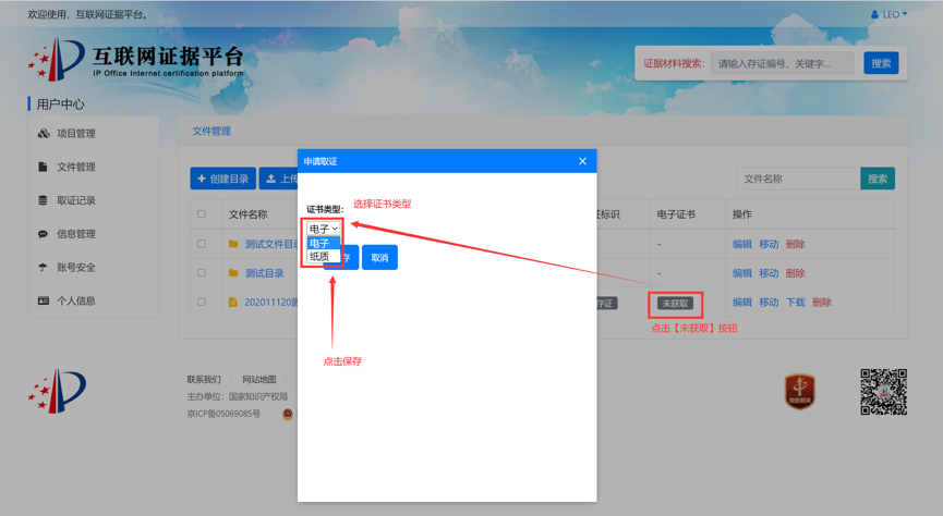 如果您是办理复审和无效案件的当事人,可以选择该方式进行证据的固化保全,以免证据三性有瑕疵,影响后续证据的采信。可通过录屏方式记录证据固化保全过程,包含电脑清洁度检查、所需存证网页或图片的获取以及文件上传存证的过程。目前客户端可上传单个不超过200M大小的文件。